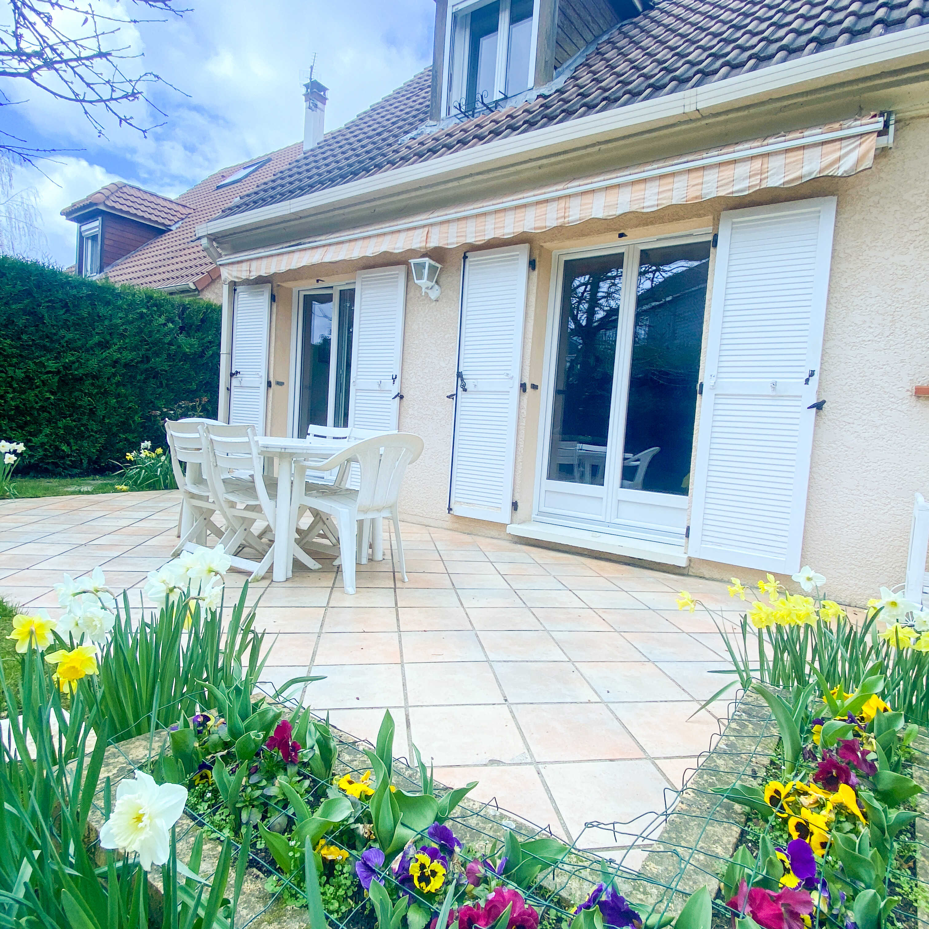 En ouvrant largement sur la terrasse, ces menuiseries créent une sensation d’espace amplifiée, idéale pour les repas en extérieur ou les moments de détente en été.