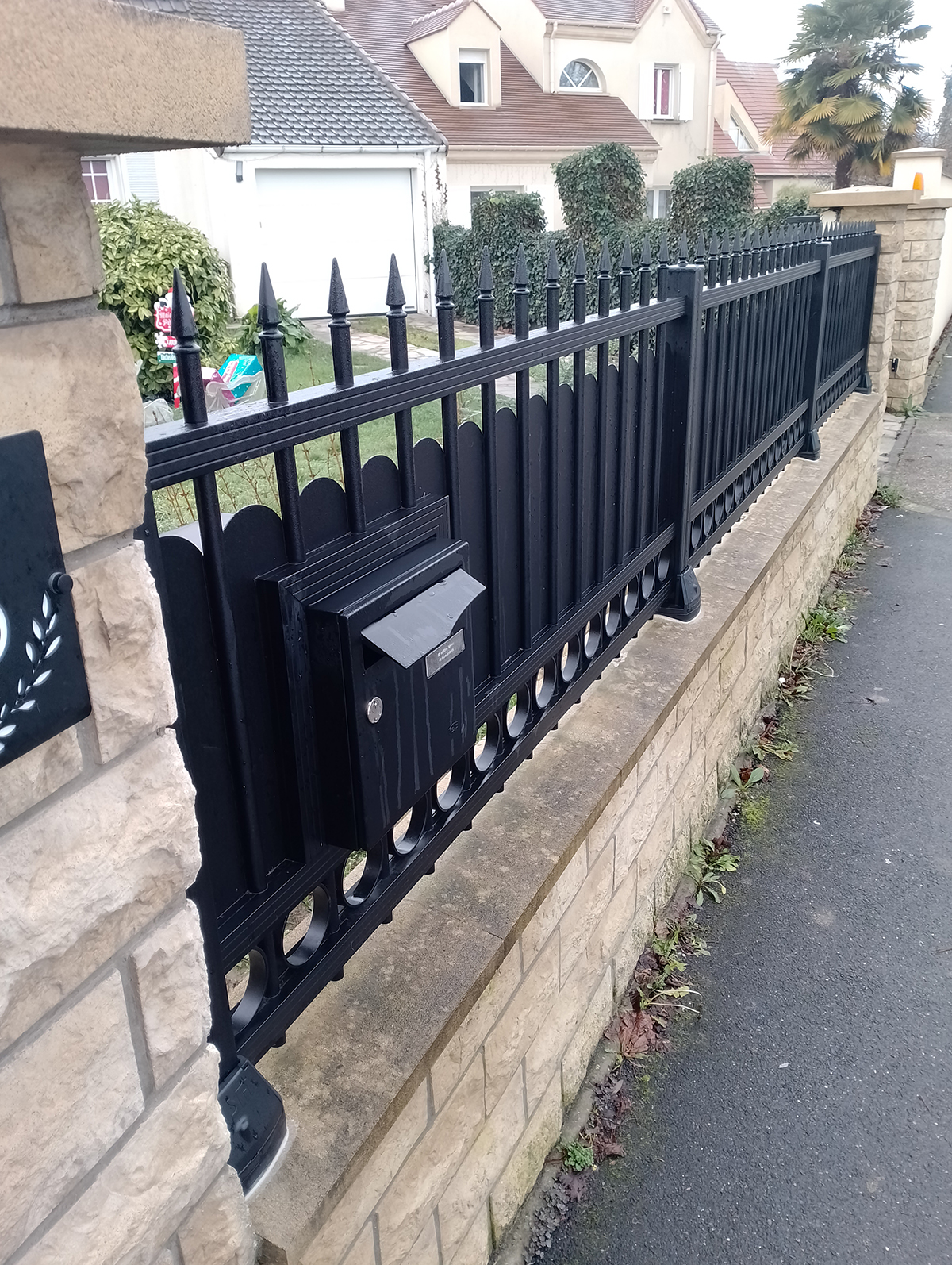 Cet ensemble élégant et moderne apporte à la fois sécurité, intimité et esthétisme à cette propriété. Le noir sablé offre un rendu intemporel et une finition haut de gamme, parfaitement intégrée à l'environnement extérieur.