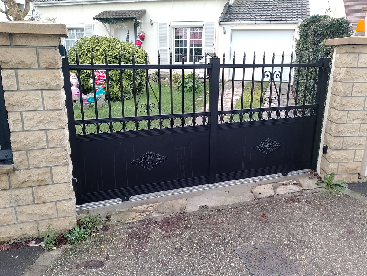 Pour cette installation de portail aluminium battant, nous avons opté pour une finition noir sablé qui apporte une touche contemporaine tout en garantissant une excellente durabilité des produits.